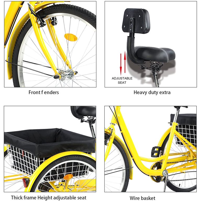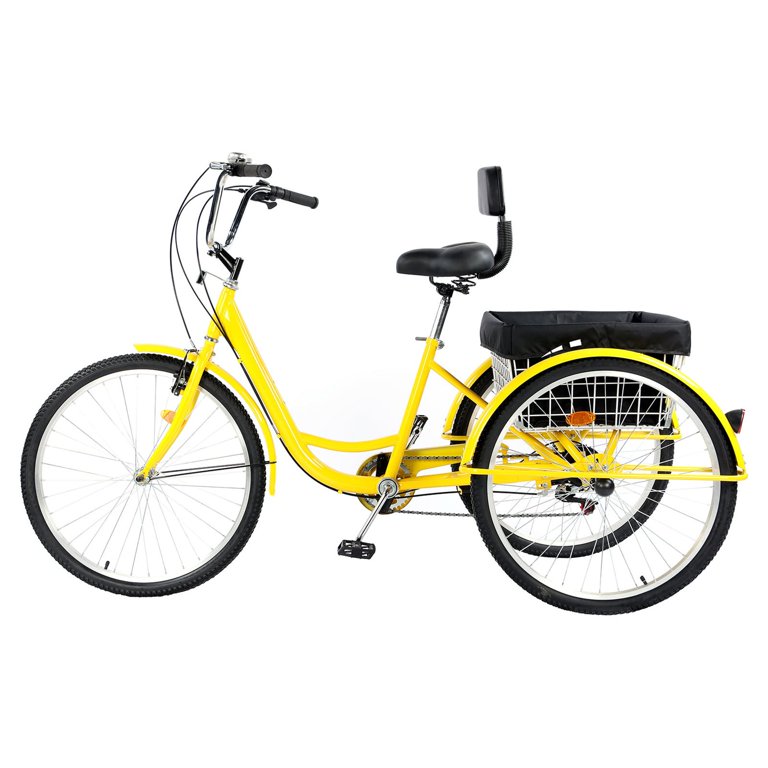 Tuoke Versatile 3 Wheel Adult Tricycle With 7 Speed Gearing 26 Inch Tires And Spacious Basket For Comfortable Riding And Storage Yellow Walmart Com