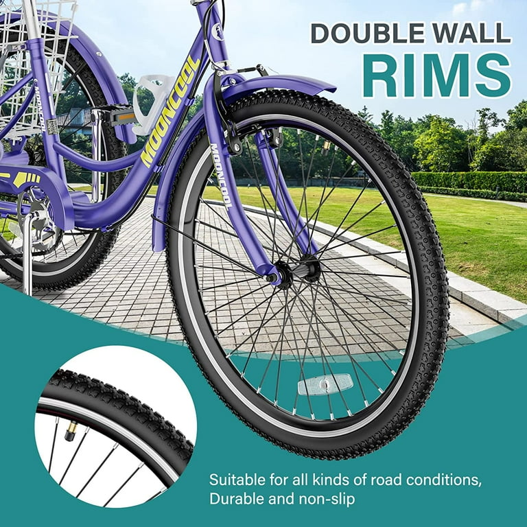 Mooncool Adult Tricycles 3 Wheel Bikes For Adults 24 26 Inch 7 Speed Adult Trikes Bicycles Cruise Trike With Shopping Basket For Seniors Women Men Walmart Com