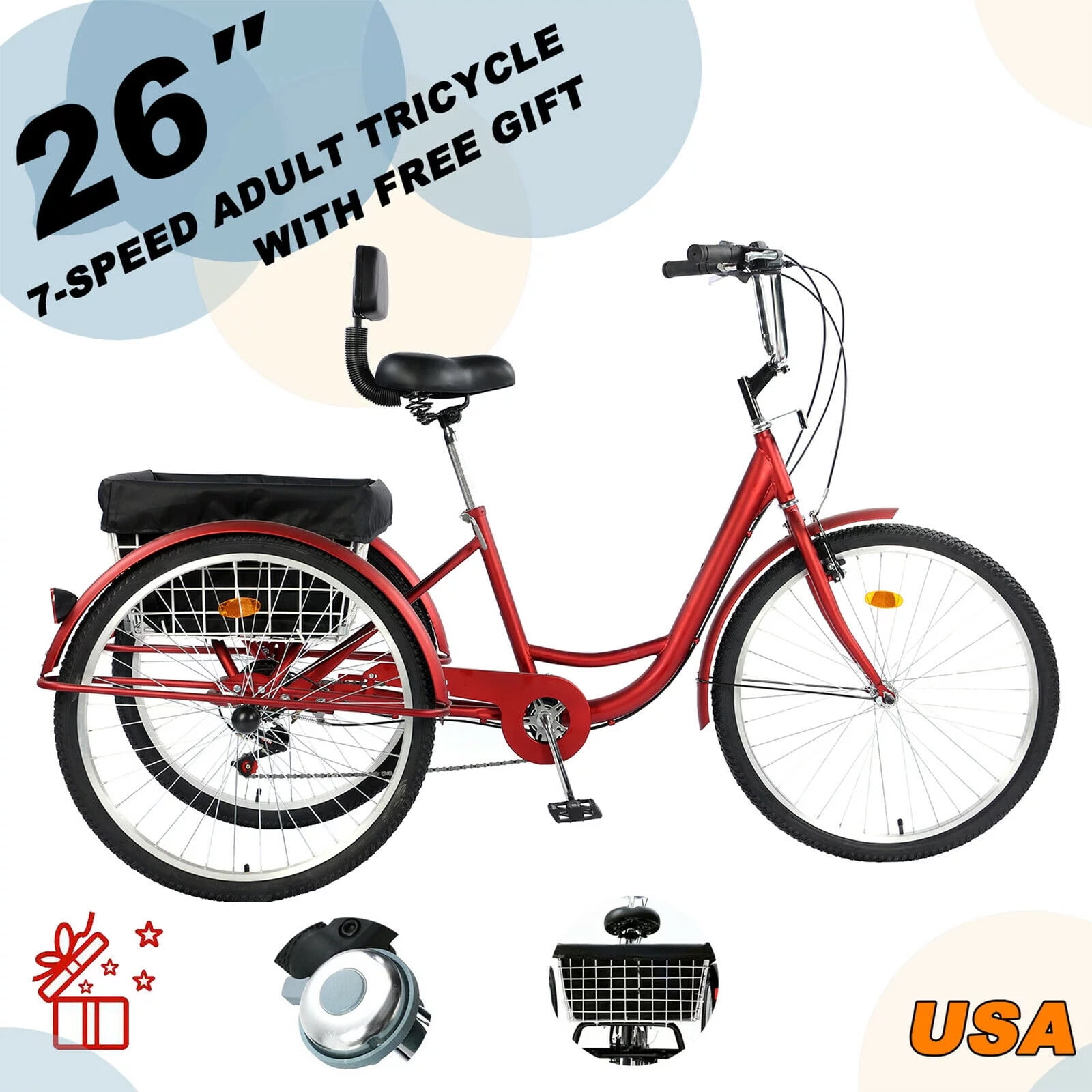Mophoto 26 Adult Mountain Trike 3 Wheel Bicycle 7 Speed Tricycle Basket Walmart Com